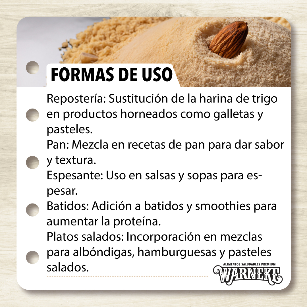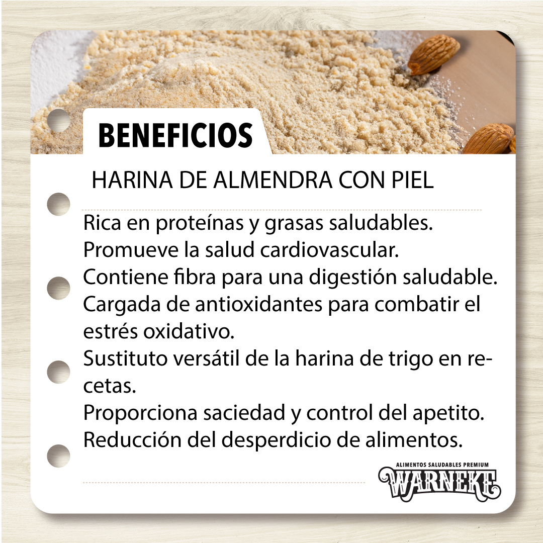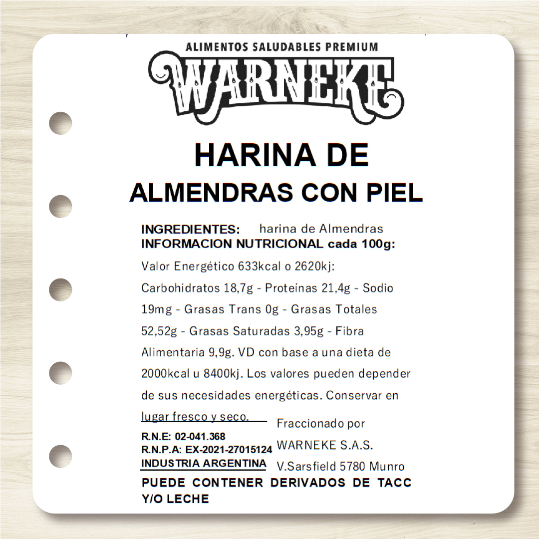 Harina 100% de almendras naturales procesadas. Nutritivas y de sabor característico.