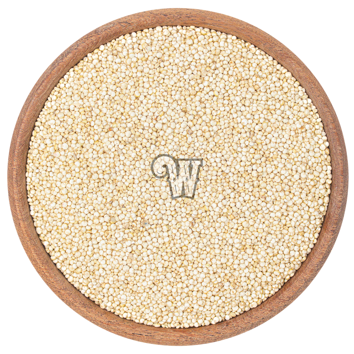 Grano de quinoa blanca, considerada un pseudocereal por el aporte de aminoácidos.